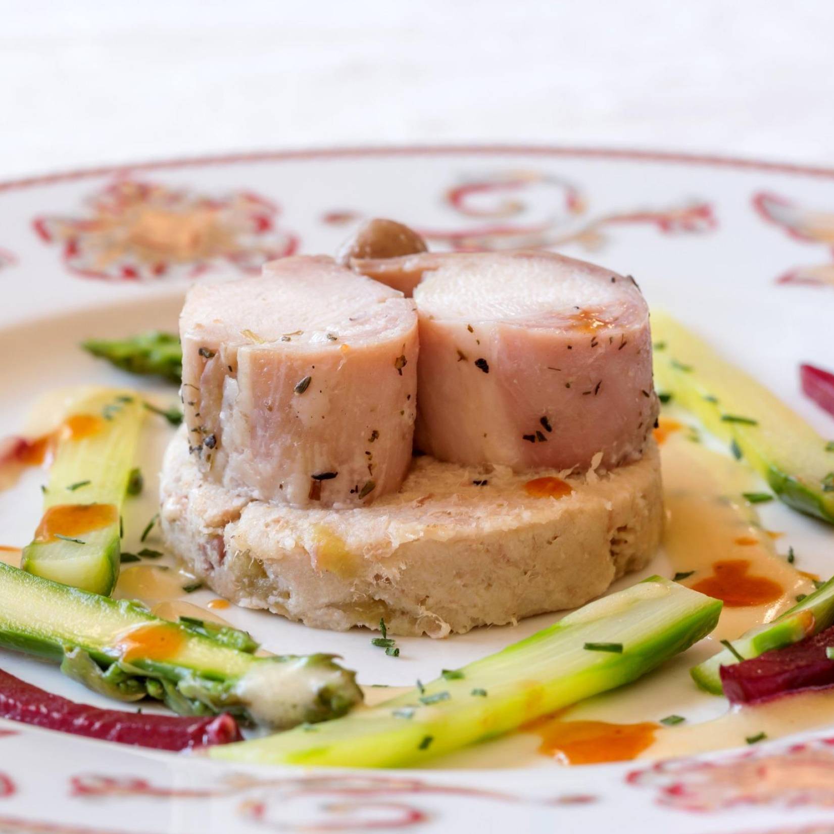Bavarois de poisson et homard, crème froide de crustacés